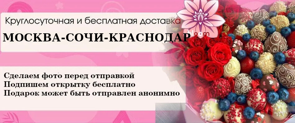 Мы принимаем и доставляем заказы в Москве и Волгограде 24/7, чтобы вы могли порадовать дорого человека в любое время. Нашими клиентами могут стать не только жители в Москве и Волгограде, курьер привезет ваши покупки за пределы города после предварительной оплаты через онлайн сервис.