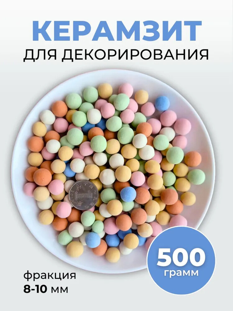 Декоративные керамические камни для интерьера отлично подойдут для декора прозрачных ваз, для дна аквариума или верхнего слоя поверхности цветочного горшка. Камушки разноцветные крепкие, камни не выгорают и не теряют окрас. Идеально для аквариума - безопасны для рыб. Декоративный камень для укладки в горшки с цветами (суккуленты, кактусы), при декорировании комнатных и садовых растений и для цветов. Можно уложить слой аквариумного грунта в аквариум. Керамзит декоративный устойчив к механическим, химическим повреждениям. Вес набора 500 грамм, фракция 8-10 мм.